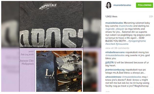 "Maraming salamat baby boy Sancho @sanchovito and darling ko @gerald_sibayan sa mga tshirts and shoes for Jiro," she began on her Instagram post.