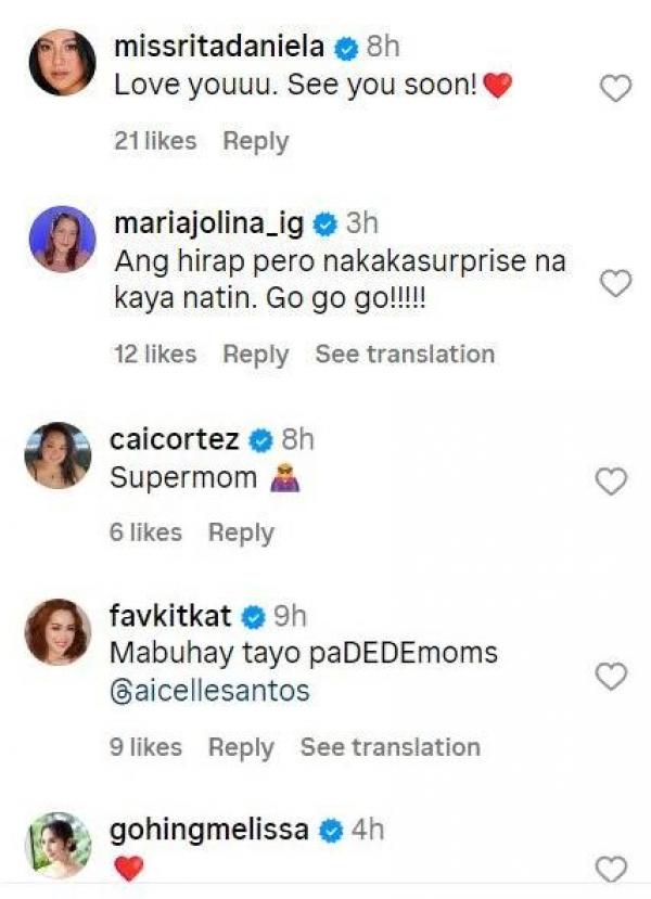 Jolina Magdangal reacted to Aicelle's post telling her, “Ang hirap pero nakakasurprise na kaya natin. Go, go, go!!!”