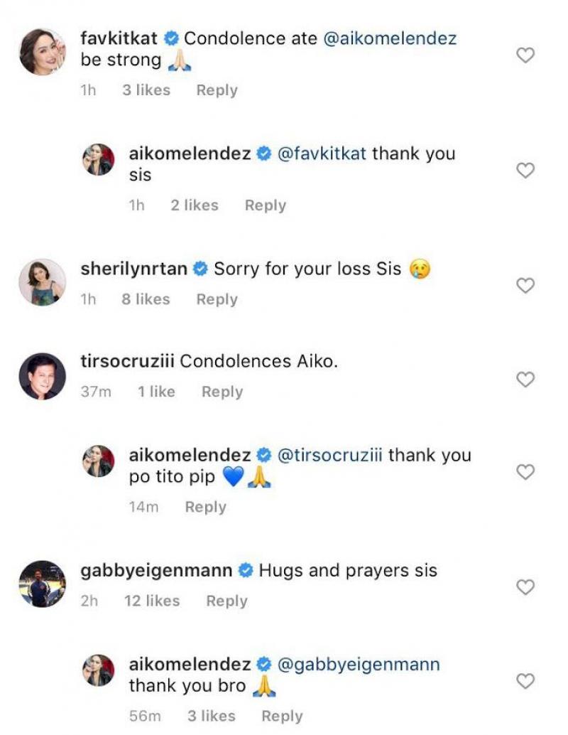 In the comment section, Aiko's celebrity friends offered their sympathies.
