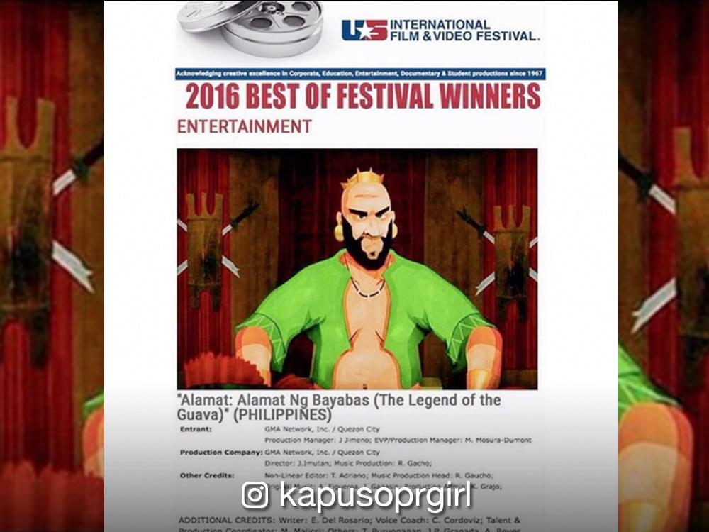 GMA’s animated anthology series Alamat makes history for being the first Philippine show to win the “Best of Festival Award” at the 2016 US International Film & Video Festival (USIFVF).