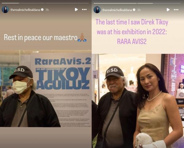Filipina actress Michelle Aldana also took to Instagram to mourn Aguiluz's passing. She posted her pictures with the director on her story. One of them has the caption: "The last time I saw Direk Tikoy was at his exhibition in 2022: RARA AVIS2"