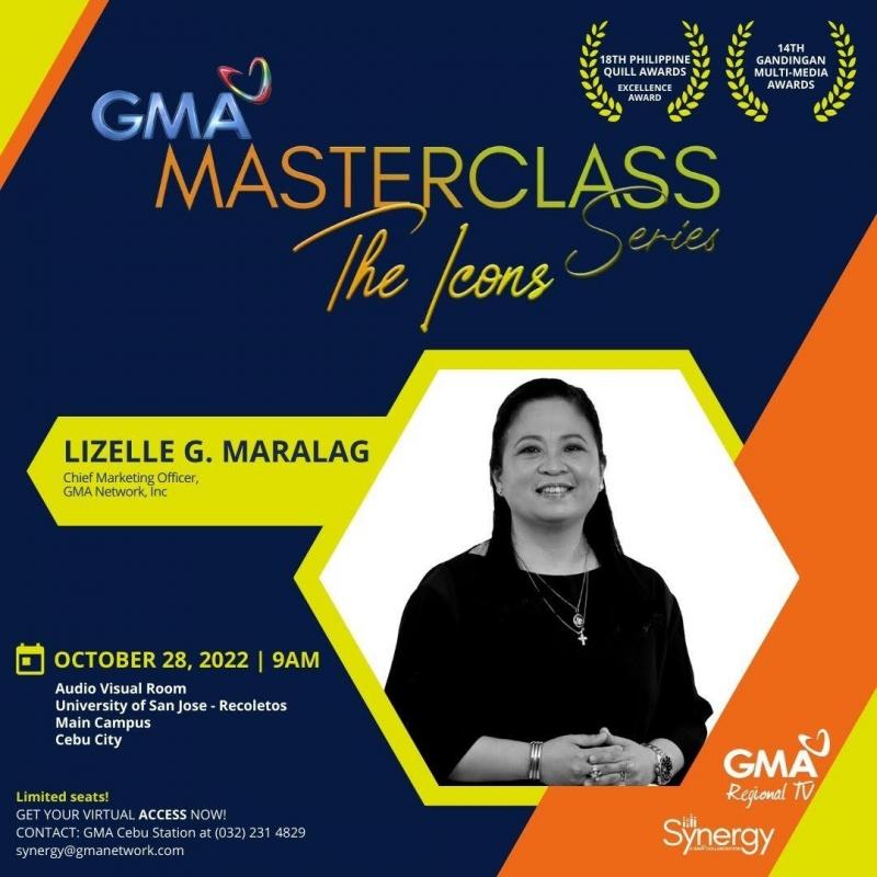 Meanwhile, the GMA Masterclass Series returns with 'The Icons Series' on October 28 featuring GMA Network Chief Marketing Officer Lizelle G. Maralag at the University of San Jose Recoletos in Cebu City. 'The Icon Series' is a continuation of the GMA Masterclass Series in Luzon, Visayas and Mindanao which won the 'Excellence in Communication and Education' at the 18th Philippine Quill Awards. It aims to provide students with relevant information, knowledge, and inspiration from leaders of various fields.
