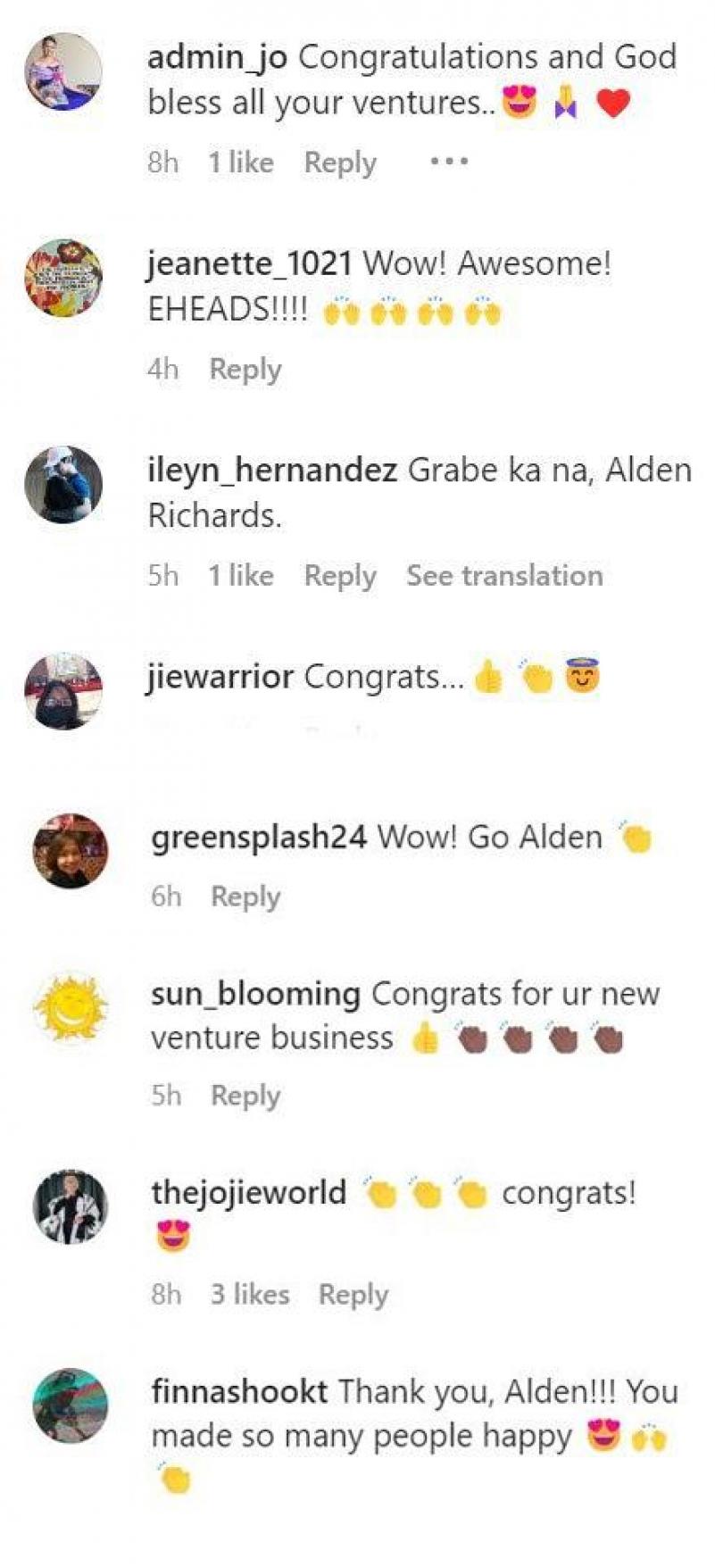 In the comments section of the post, Alden's fans and followers happily wished Alden luck on his new venture.