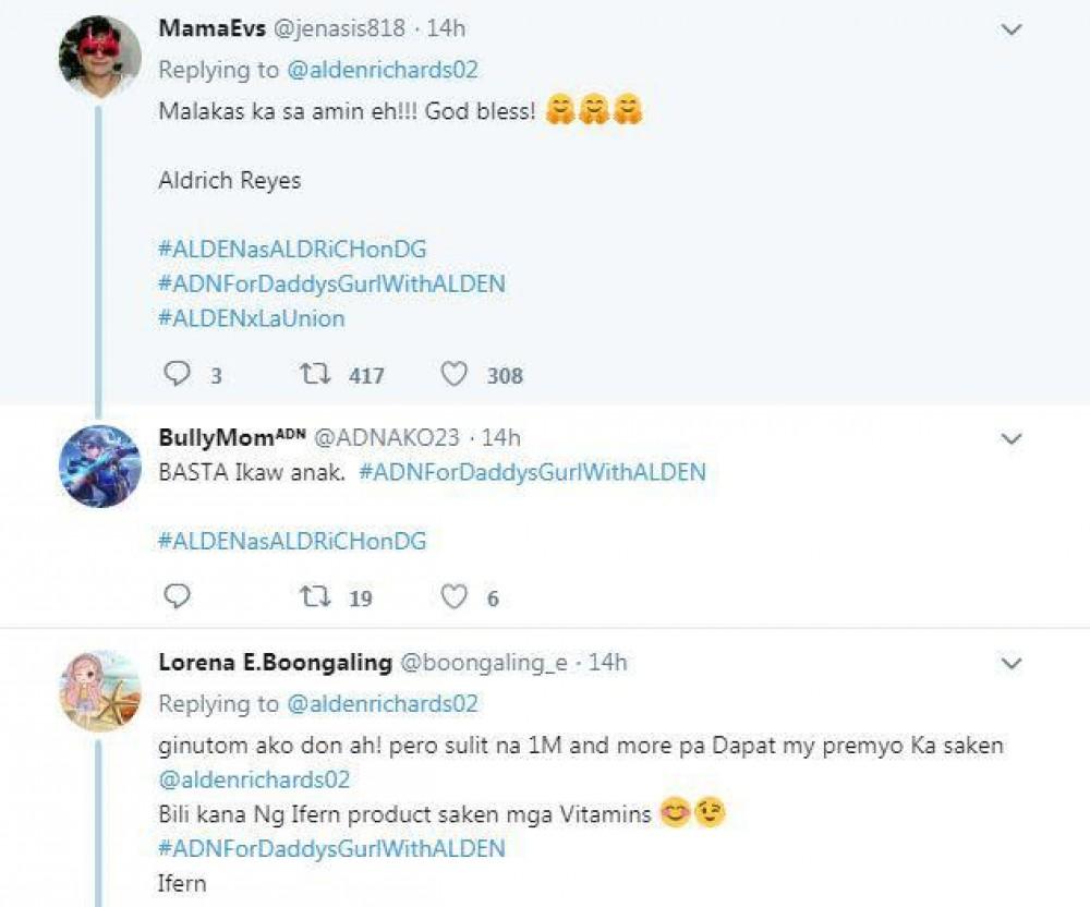 Nag-trending sa Twitter ang ilang Daddy's Gurl hashtags, na lubos na pinagpapasalamat ni Alden.