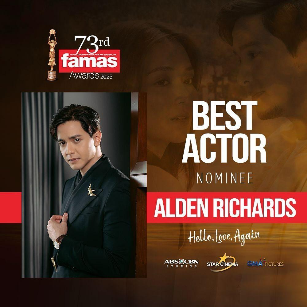 Samantala, nominado si Alden bilang Best Actor sa kapitapitagang 73rd Filipino Academy of Movie Arts and Sciences (FAMAS) Awards.