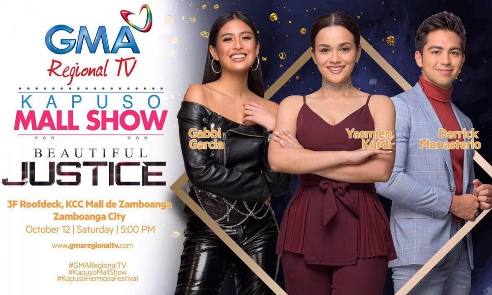 Beautiful Justice stars Yasmien Kurdi, Gabbi Garcia, and Derrick Monasterio will be performing in the GMA Regional TV mall show on Saturday, October 12, at the KCC Mall de Zamboanga.