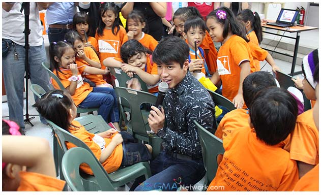 After the games, it was Aljur’s turn to entertain the kids. He performed the song, Sa Isang Sulyap Mo for them. Then, a surprise AVP that featured World Vision children from Palawan was shown. Aljur was touched by their effort to extend their greetings and well wishes to him.