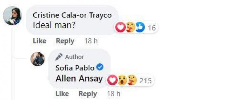 Bukod sa ilang basic questions, isa sa naging tanong kay Sofia ay kung sino ang kanyang ideal man. Marami naman sa kanilang fans ang kinilig nang i-mention ni Sofia si Allen bilang kanyang sagot sa nasabing tanong.