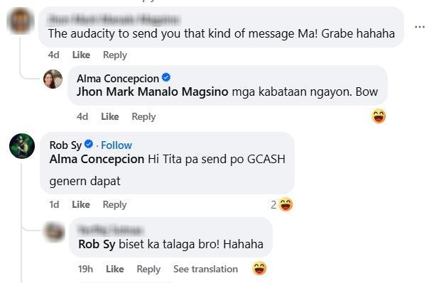 Makikita sa comment section na idinaan na lang ng former beauty queen sa tawa ang natanggap niyang mensahe.