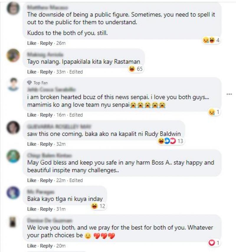 In a short note, she said, "To those asking, wala na kame. It's been a while. We tried to work things out many times but some things are not meant to be. I hope you respect our privacy during this time in our lives."
