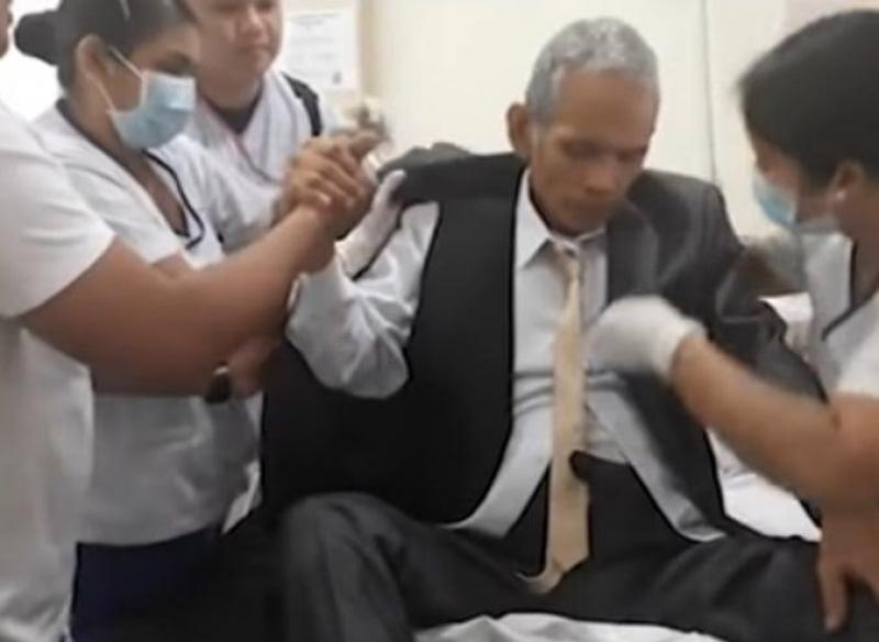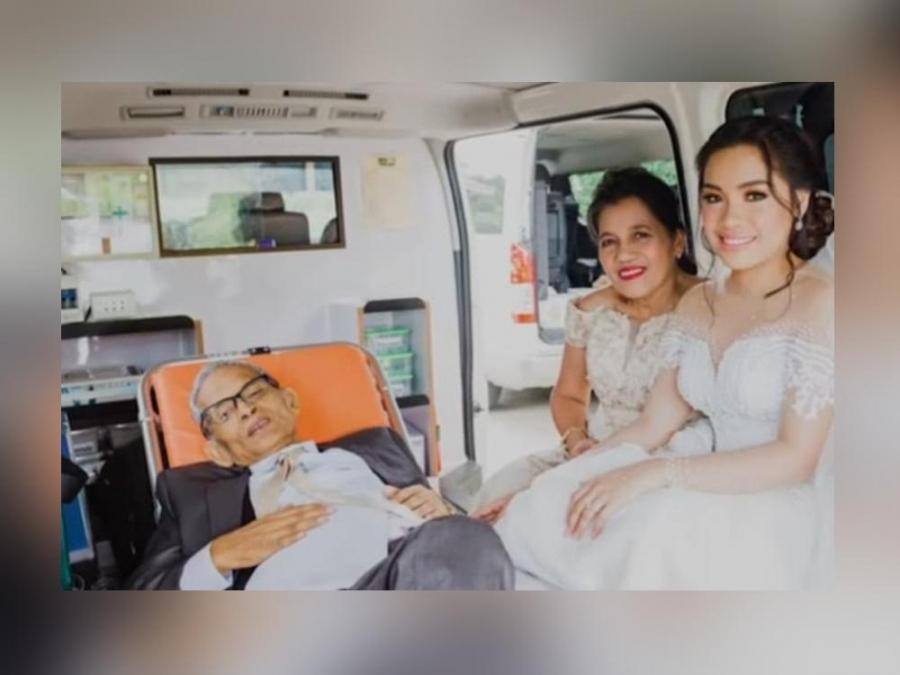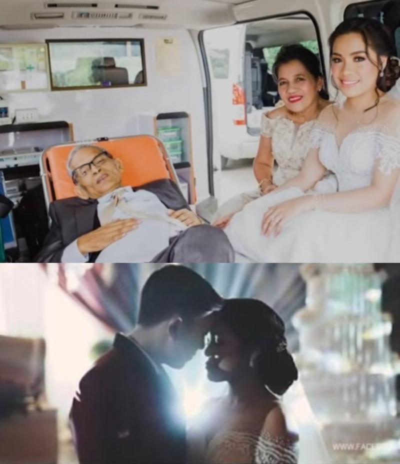 Di gaya ng magagarang sasakyan tuwing kasal, sa isang ambulansiya isinakay si Tatay Pedro papunta ng simbahan. Sa ambulansiya na rin nakapagpictorial si Charlotte kasama ang mga magulang.