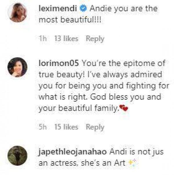 Andi's showbiz friends and netizens praised Andi's glowing look and wished her well in her pregnancy journey.