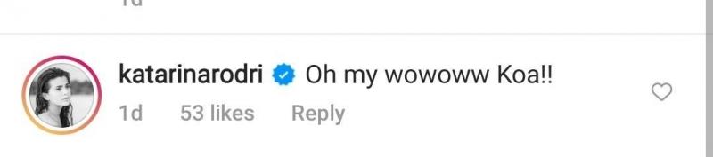Model-turned-beauty queen Katarina Rodriguez left a comment on the post, “Oh my wowoww Koa!!”