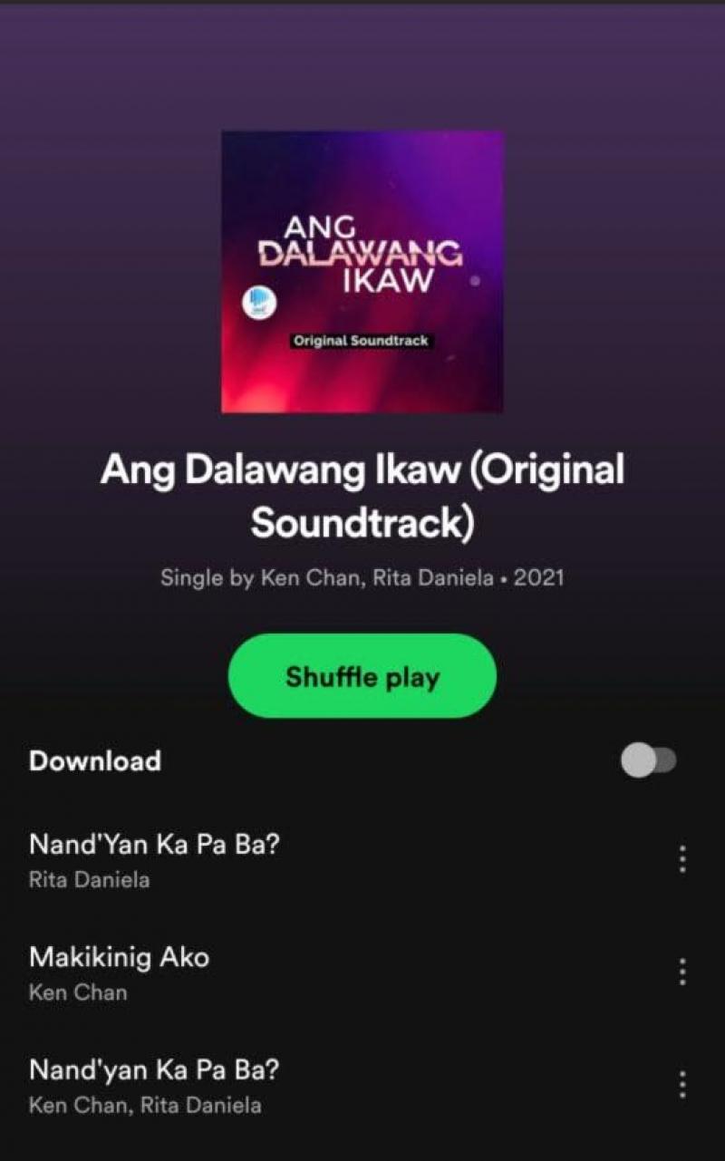 RitKen fans can now listen to the original soundtrack of GMA Afternoon Prime series Ang Dalawang Ikaw on Apple Music, Spotify, and YouTube Music.
