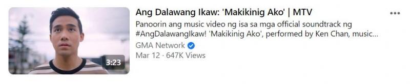 Meanwhile, "Makikinig Ako" has so far 647,000 views on the popular social networking site.