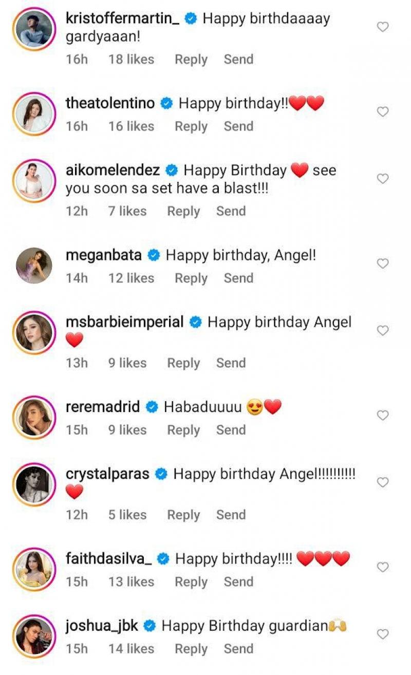 In the comments section, her followers and fellow celebrities including Megan Young, Kristoffer Martin and Aiko Melendez sent their birthday messages and wishes for Angel.