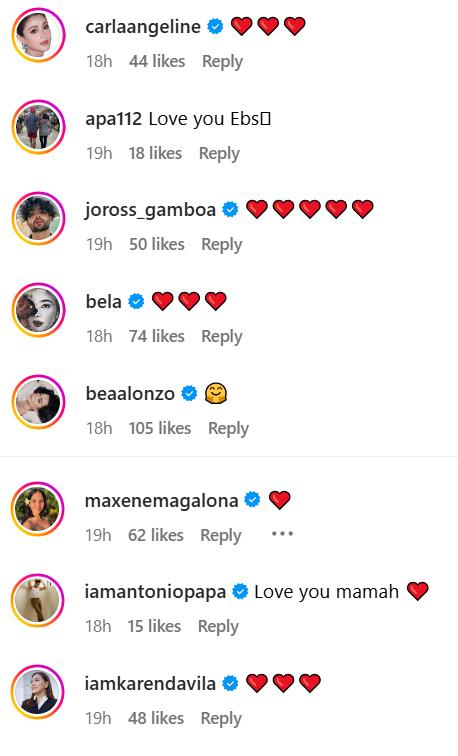The comments section of her post dedicated to Mommy Annabelle was filled with messages of love and support from her celebrity friends and colleagues, including Bea Alonzo, Bela Padilla, and Maxene Magalona.
