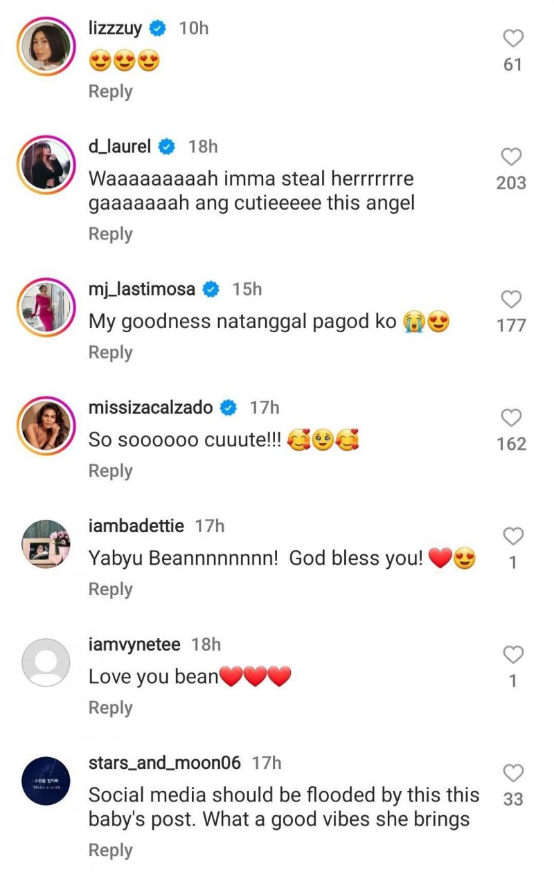 Meanwhile, netizens including her fellow celebrities like MJ Lastimosa, Denise Laurel, Liz Uy, and Iza Calzado couldn't help but gush over baby Bean's cute smiles and blue eyes.