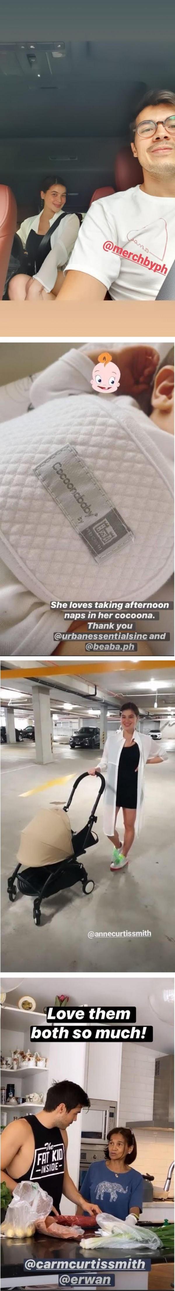 In a series of posts on their respective Instagram story, the family of three showed a glimpse of the actress post-partum while Baby Dahlia is cradled quietly in her stroller.