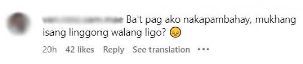 "Ba't pag ako nakapambahay, mukhang isang linggong walang ligo?" one comment read.