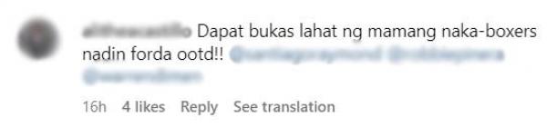 "Dapat bukas lahat ng mamang naka-boxers nadin forda ootd!! @santiagoraymond @robbiepinera @warrendimen" photographer Alithea Castillo said before tagging Anne's glam team hairstylist Raymond Santiago and makeup artist Robbie Pinera, and Viva Modeling Agency's Lindsey Warren Dimen.