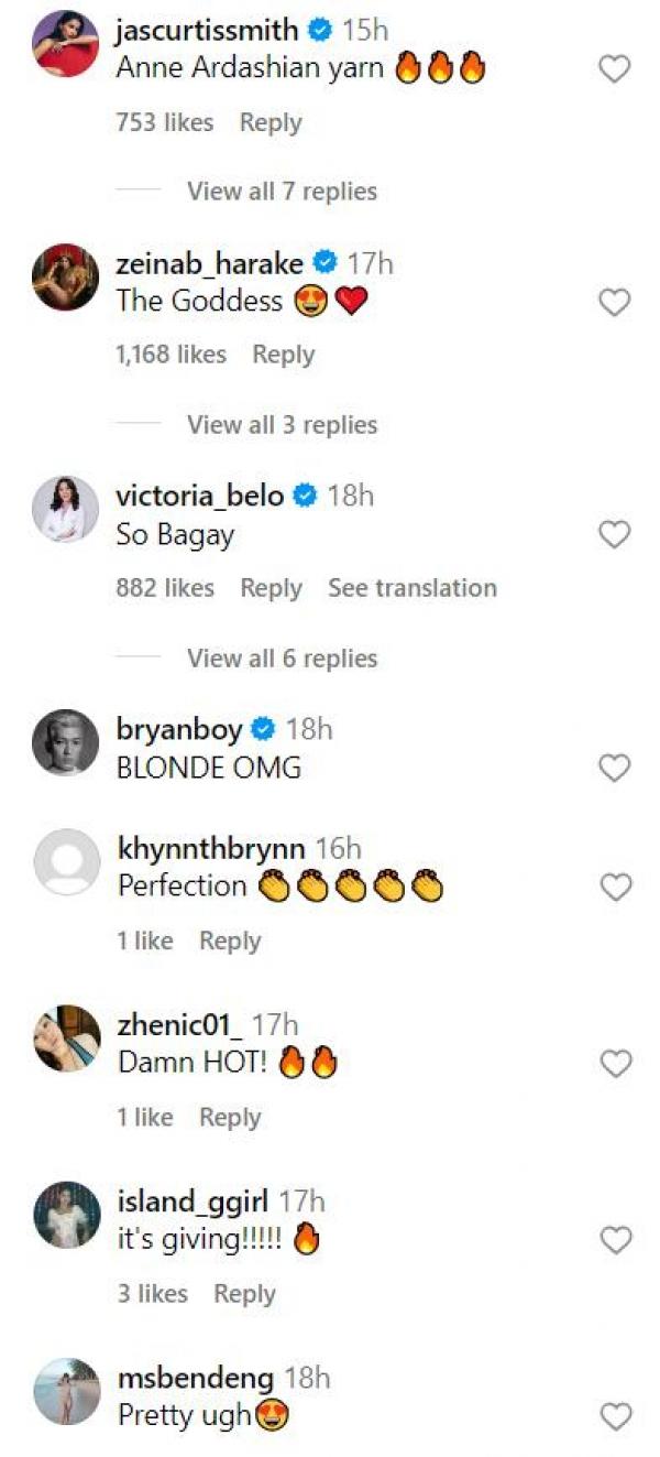 Sa comments section, maraming netizens at celebrities ang namangha sa blonde hairstyle ni Anne gaya nina Jasmine Curtis-Smith, Zeinab Harake, Vicki Belo, at Bryan Boy.