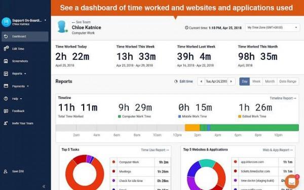The tool will take screenshots of your team's monitors and monitors chats they're having within the app. Time Doctor doesn't just track how much time people are spending on work, though. It also looks at how much time is spent on each project, as well as outside programs and apps.