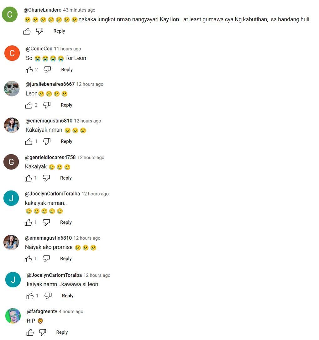 Komento ng isa, "nakaka lungkot nman nangyayari Kay leon.. at least gumawa cya Ng kabutihan, sa bandang huli."