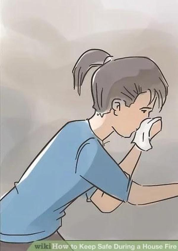 If you have no time to make a temporary mask, you can simply wet a hanky or face towel and cover your nose and mouth with it.