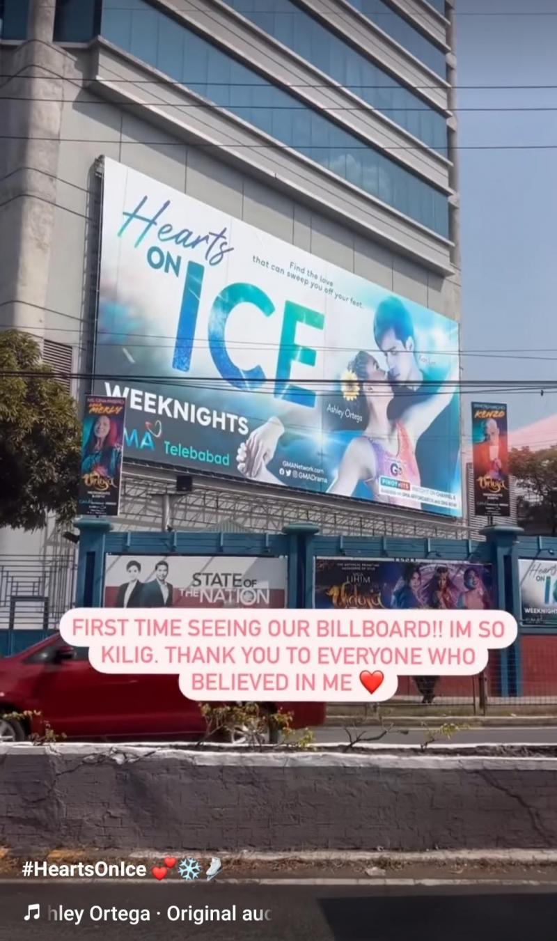 Sa Instagram, ibinahagi ng aktres ang kilig na nararamdaman nang makita na ang billboard ng Hearts On Ice.