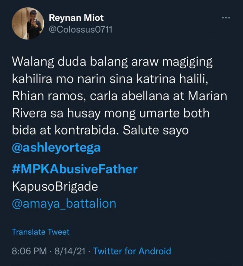 Sa nasabing episode, ang karakter ni Ashley ang panganay na anak na paulit-ulit inabuso ng kanilang sariling ama.