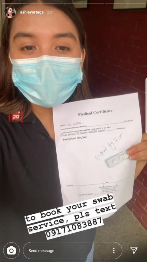 Ashley Ortega shared that she has received the result of her swab test in just 15 minutes.