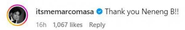 "Thank you Neneng B!!" he said in the comment section of her post.