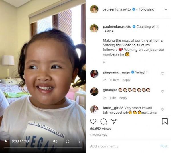 Pauleen Luna's Instagram video showed Tali Sotto counting in Tagalog, English, Spanish, and Chinese.