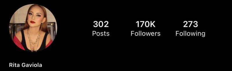 Sa kasalukuyan, nasa 170,000 na ang followers ni Rita Gaviola sa kanyang Instagram account.