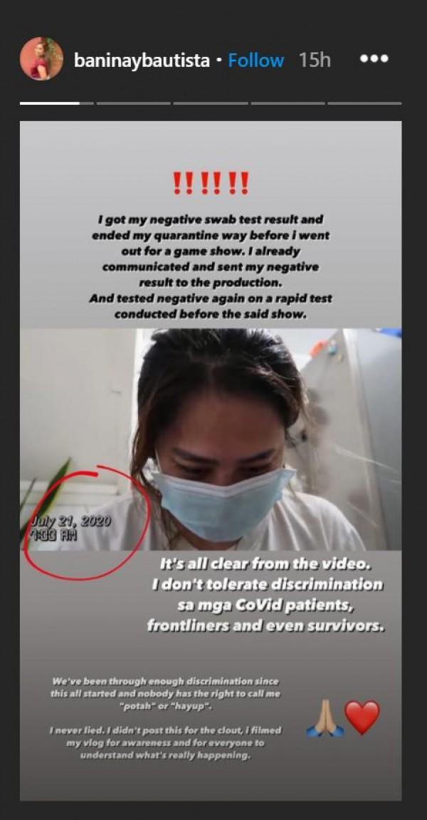Binigyang linaw ni Baninay sa kanyang Instagram Story ang ilang detalye tungkol sa kanyang vlog lalo na sa bahagi kung kailan talaga siya tinamaan ng sakit.