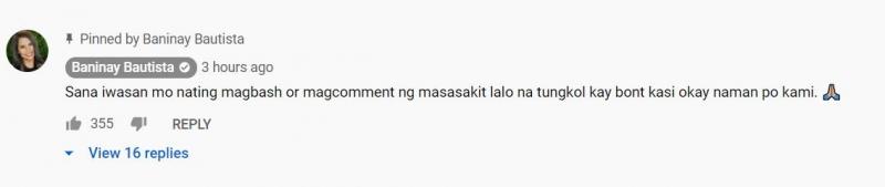 Kasunod nito, ibinahagi ni Baninay na mayroon silang mga hindi pagkakaintindihan ni Bont na hindi nila maayos.