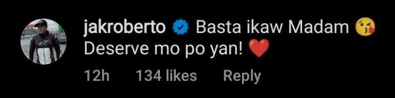 Shortly after the post's upload, the Kapuso hunk had a heartfelt reply for his beloved girlfriend through the words, “Basta ikaw Madam. Deserve mo po 'yan!”