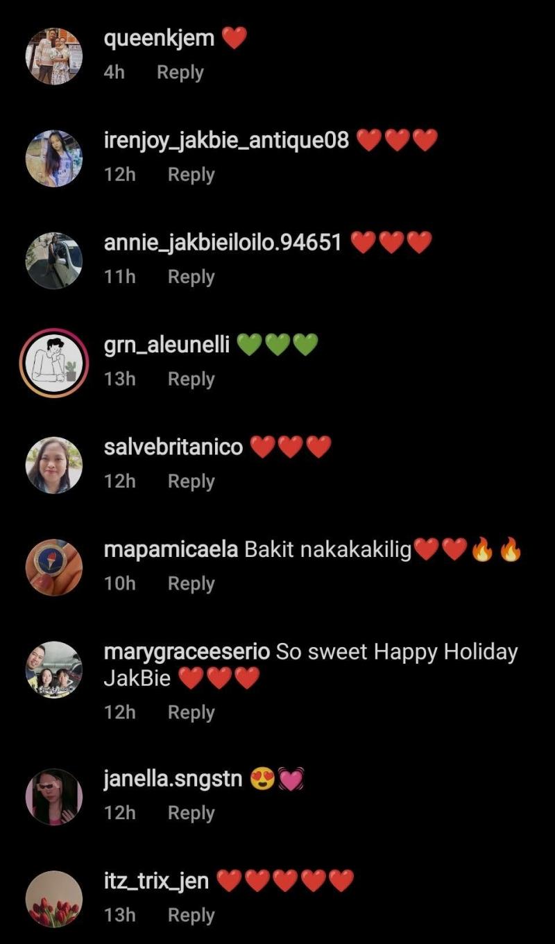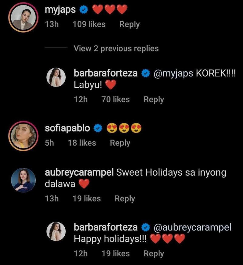 Other Kapuso celebrities and personalities such as Asia's Pop Diva Julie Ann San Jose, Prima Donnas star Sofia Pablo, and 24 Oras reporter Aubrey Carampel expressed their love for Jak and Barbie through loving messages and heart emojis.