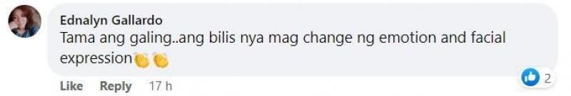 "Tama ang galing..ang bilis niya mag change ng emotion and facial expression," komento ng isang netizen.