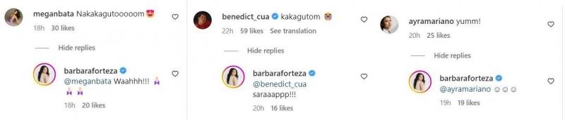 May mga celebrities naman ang napa-react sa katakam-takam na Instagram post ni Barbie tulad nina Miss World 2013 Megan Young at ang vlogger na si Benedict Cua.
