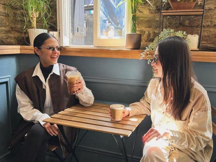 The two actresses were spotted having a candid moment together in a cafe, captured in a photo.
