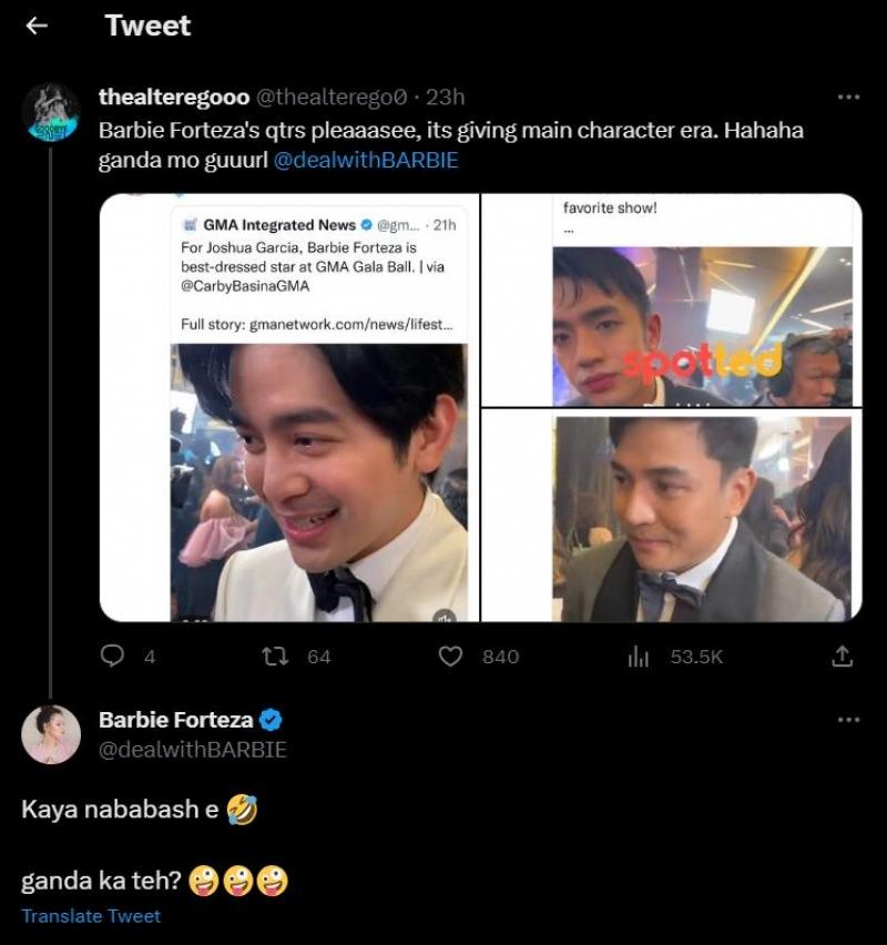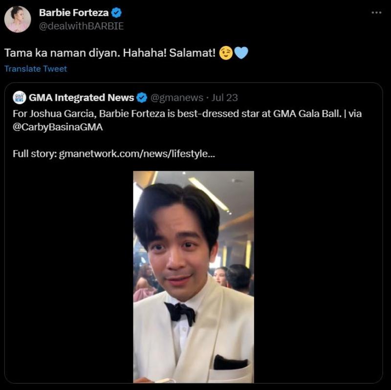 Matapos makatanggap ng papuri bilang Best Dressed mula sa mga co-actors sa nagdaang GMA Gala 2023, hindi maiwasang mag-react ng Kapuso Primetime Princess at Maging Sino Ka Man star na si Barbie Forteza sa mga pumuri sa kanya.