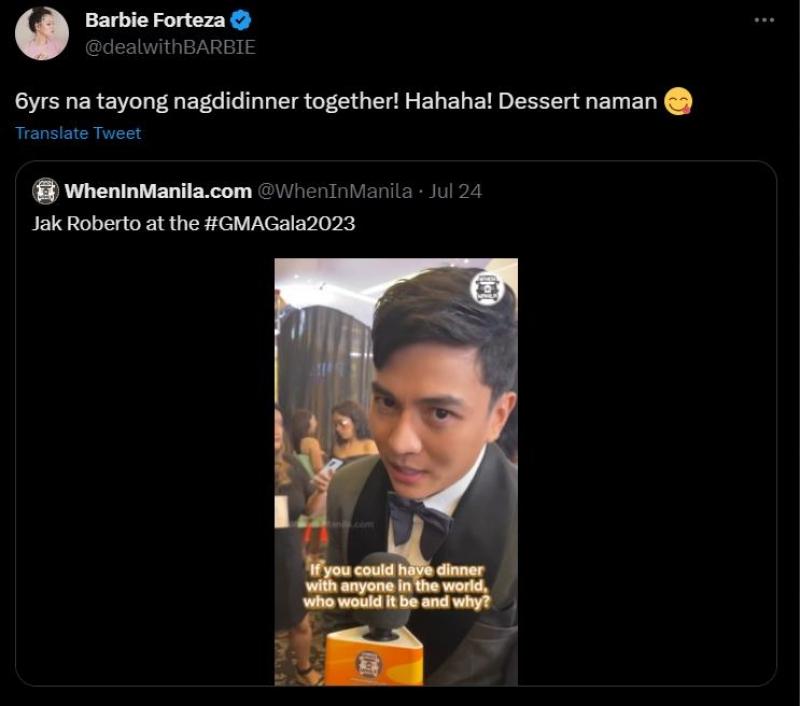 At ang sagot ni Barbie, “6yrs na tayong nagdidinner together! Hahaha! Dessert naman 😋”