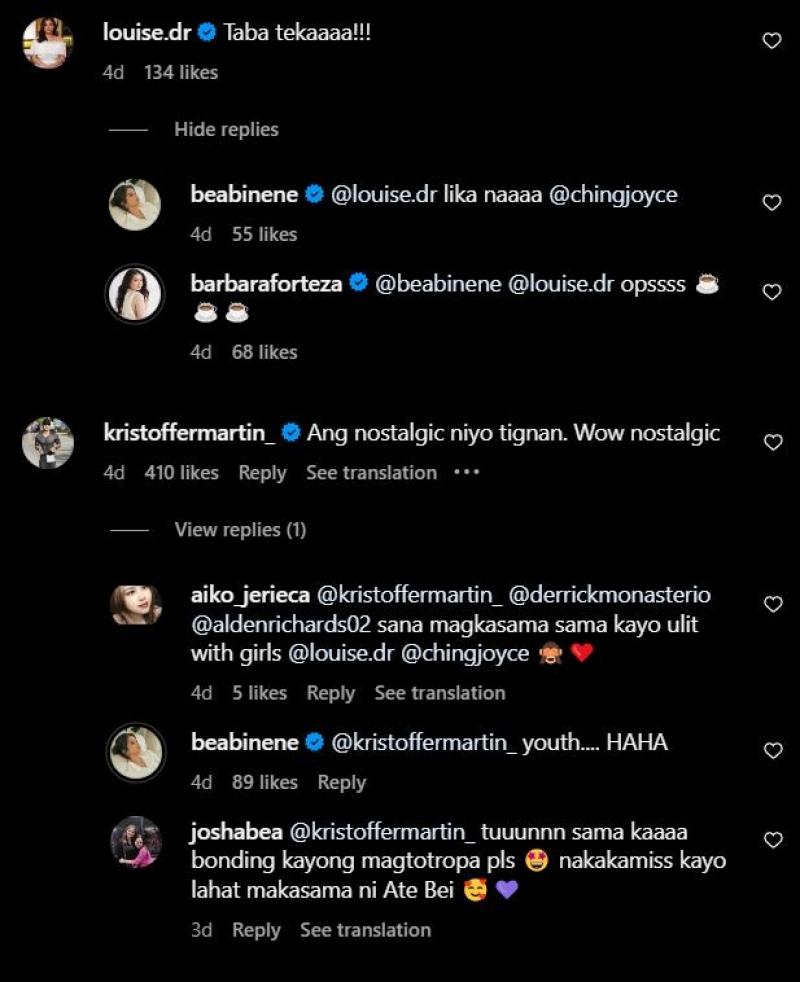 Na-excite naman ang iba pang Tween Hearts stars na sina Kristoffer Martin at Louise Delos Reyes at direktor nitong si Gina Alajar sa pagkikita nina Barbie at Bea.