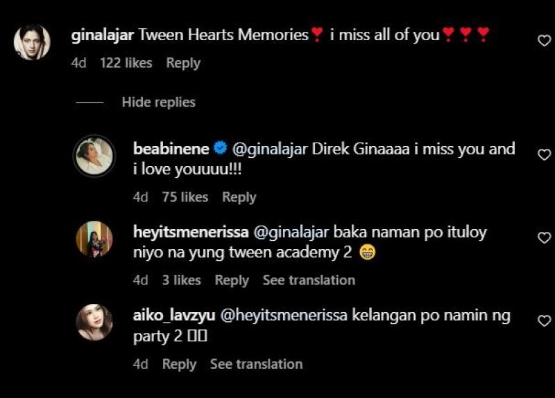 "Baka naman po ituloy niyo na yung tween academy 2," hirit ng isang commenter kay direk Gina.