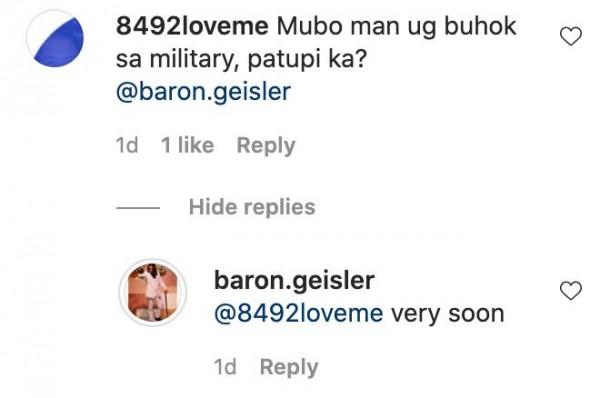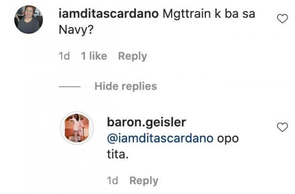 In the comments, Baron confirmed his participation when someone asked, “Magte-train ka ba sa navy?”