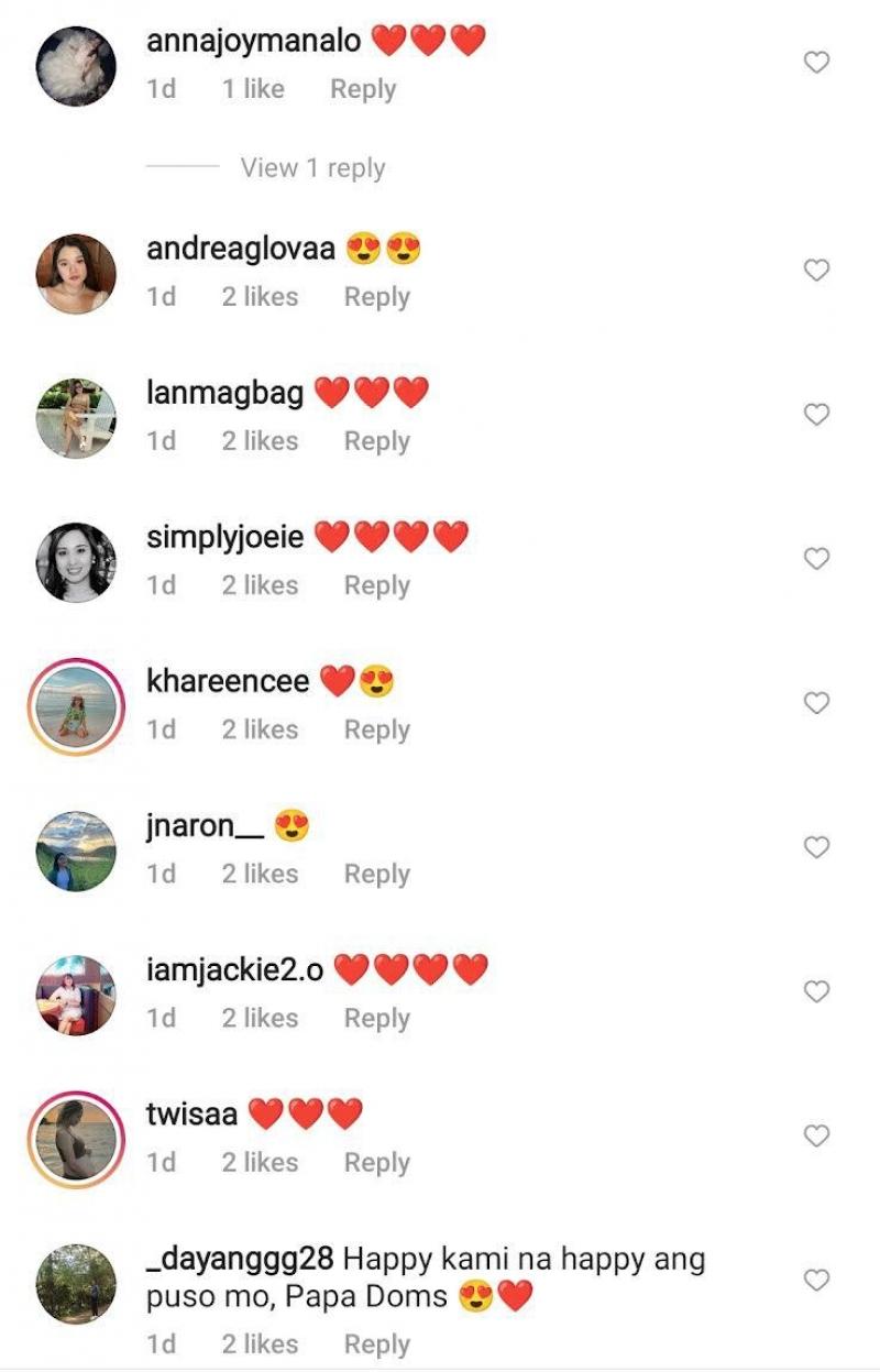 Agad naman itong sinagot pabalik ni Dominic at kagaya ng aktres, nag-iwan din siya ng tatlong heart emojis.