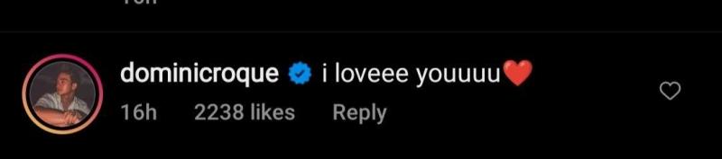 Shortly after the post's upload, Dominic replied with three simple yet romantic words, “I love youuu.”