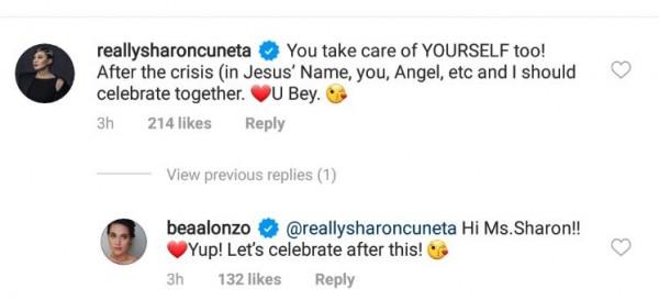 Meanwhile, "Megastar" Sharon Cuneta also commented on Bea's post and advised her to take care of herself.